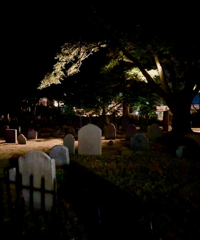 This tour has fantastic reviews on Expedia and TripAdvisor, but it was probably, unfortunately, our biggest miss of the trip. It was a good opportunity to walk all over town, and we hadn’t gone yet to the Salem Witch Trials Memorial or Charter Street Cemetery (aka Old Burying Point). But the guide we had just didn’t hit the right note for us. She was very perky and flippant, and we wanted someone who would take on a more serious, spooky tone – one that would scare the bejeezus out of us, preferably, or at the very least pack in a ton of historical knowledge. The tours start every 15 minutes and follow the same path, so we did catch very short snippets from two other guides as we wandered about. From the bits we overheard, we wished we had been assigned to Hilary (with one “l”).