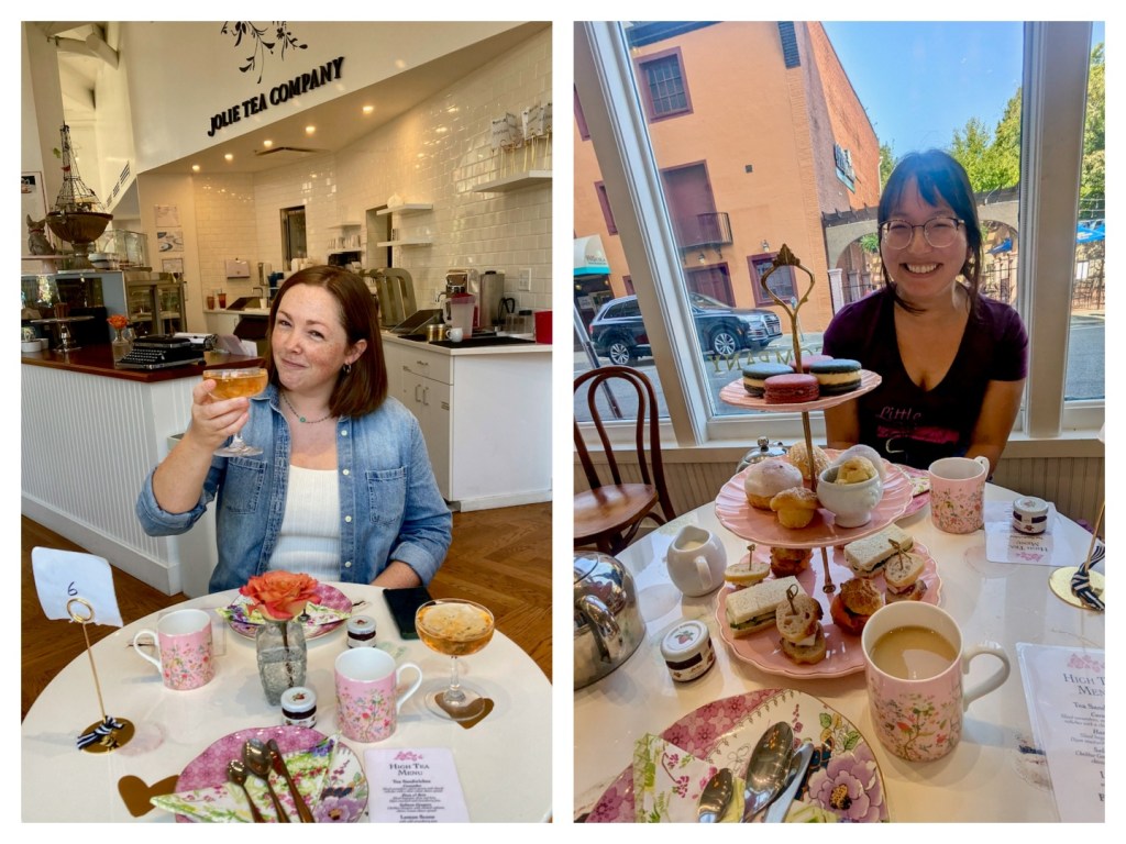 Hannah and I adore an afternoon tea. And Jolie Tea Company was a lovely place to take a break. This tea menu included three tea sandwiches (cucumber, ham and brie, and salmon gougère), a lemon scone (with jam and cream), two French macarons, a madeleine, a pot of tea, and a complimentary crème brulée tisane. For your pot of tea, we highly recommend the Witch’s Brew blend, not just because it feels appropriate for Salem, but also because it has a very pleasant fall flavor.