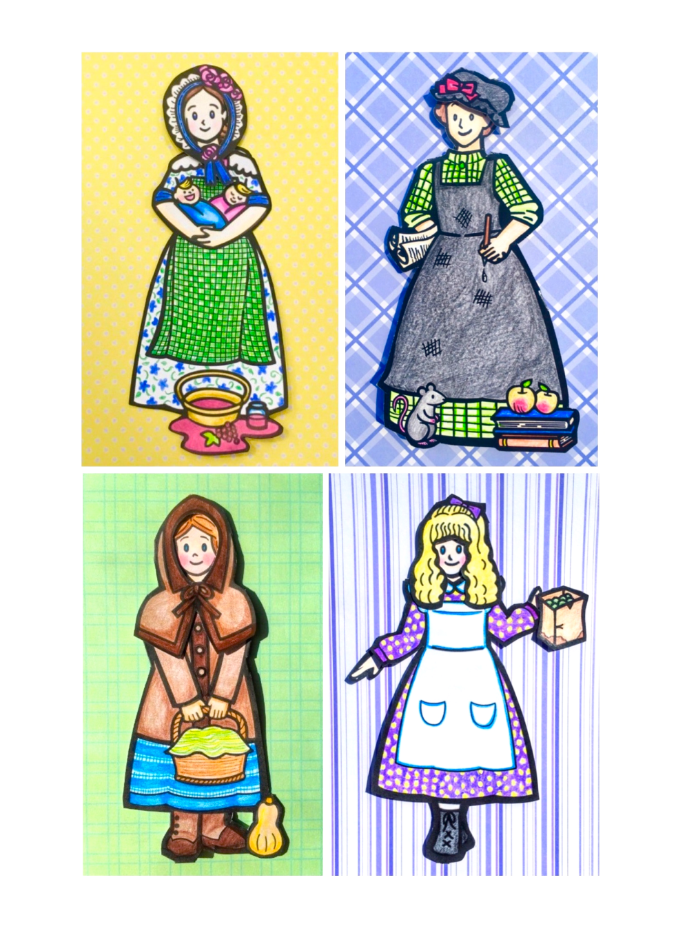 Phew, finished making all four March sister paper dolls, just in time for Christmas Day! You can print and color your own by following the links here.